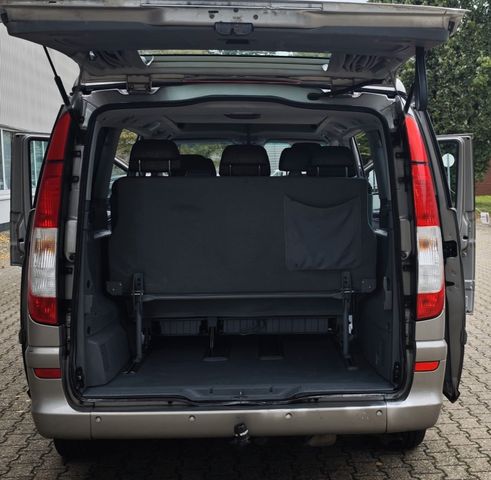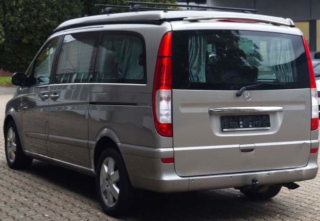 **Sonderausstattung:**\\2. Batterie verstärkt 88 Ah, Audio-Navigationssystem: Autopilot-System APS COMAND mit TMC-Schnittstelle, AUX-IN-Anschluss, Batterie 100 Ah, Batterie zusätzlich (verstärkt), CD-Wechsler, Dachbett, Getränkehalter vorn, Karosserievariante: Aufstelldach, Komfort-Plus-Paket / Comfort FUN, Lenkrad mit Multifunktion inkl. Reiserechner, Metallic-Lackierung, Parkhilfe (Ultraschall), Reserverad mit Wagenheber, Sitzausstattung: Tisch zwischen 1. + 2. Rücksitzreihe, Sitze im Fahrerhaus: Beifahrersitz heizbar, Sitze im Fahrerhaus: Fahrersitz heizbar, Vorbereitung Mobiltelefon/Handy vernetzt, Vorhänge rundum, Zuheizer\\\\**Weitere Ausstattung:**\\Airbag Beifahrerseite, Airbag Fahrerseite, Anzeige für Waschwasserstand, Ausstattung Fun, Außenspiegel elektr. verstell- und heizbar, beide, Außentemperaturanzeige, Bremsassistent, Fenster für hintere Türen / Heckklappe mit Wisch-/Waschanlage, Generator 200 A, Getränkehalter hinten, Handschuhfach abschließbar, Heckklappe mit Verglasung, Karosserie/Aufbau: Bus, Karosserie/Aufbau: lang, Kindersicherung, Komfort-Kopfstützen Fahrgastraum, Lenkrad (Lenksäule mech. verstellbar), Mittelkonsole mit Staufach, Motor 3,0 Ltr. - 150 kW CDI, Nebelschlussleuchte, PKW-Zulassung, Radstand 3200 mm, Radvollabdeckung, Reifen 205/65 R16C 103/101 T, Rückspiegel innen, Schadstoffarm nach Abgasnorm Euro 4 Gr. III, Sicherheitsgurt-System mit Warnanlage (Fahrer-/Beifahrerseite), Sitzausstattung: Schnellverriegelung für Sitzschienen-System, Sitzbezug / Polsterung: Stoff Samba, Sitze im Fahrerhaus: Beifahrersitz Komfort, Sitze im Fahrerhaus: Fahrersitz Komfort, Sitze im Lade-/FG-Raum: 2.Reihe, 3er-Sitzbank, Stahlfelgen 6,5x16, Steckdose (12V-Anschluß) im Lade-/Fahrgastraum, Steckdose für Wiederholungsleuchte Fahrradträger Heck, Stoßfänger / Stoßf.-Leiste seitlich + Griff an Heckklappe lackiert, Warmluftkanal zum Lade-/Fahrgastraum, Wartungsintervall-Anzeige Assyst, Wärmeschutzverglasung\\DruckenFahrzeug parken* Details\\* Anbieter\\Weitere technische Daten----Hubraum2143 cm³Anzahl Sitzplätze7Anzahl der Türen4/5SchadstoffklasseEuro5Umweltplakette4 (Grün)Anzahl der Fahrzeughalter1HU07/2027FarbeRot (Metallic)InnenausstattungStoffFarbe der InnenausstattungGrauKraftstoffverbr. komb.ca. 4,6 l/100 kmKraftstoffverbr. innerortsca. 5,6 l/100 kmKraftstoffverbr. außerortsca. 4,0 l/100 kmCO₂-Emissionen kombiniertca. 119 g/kmZugr.-lgd. TreibstoffartDieselEnergieeffizienzklasseA+CO2-EffizienzAuf der Grundlage der gemessenen CO2-Emission unter Berücksichtigung der Masse des Fahrzeugs ermittelt.Ausstattung----Innenausstattung* Armlehne\\* Berganfahrassistent\\* Bluetooth\\* Bordcomputer\\* CD-Spieler\\* Einparkhilfe (Vorne, Hinten)\\* Elektr. Fensterheber\\* Elektr. Sitzeinstellung\\* Freisprecheinrichtung\\* Klimatisierung (2-Zonen-Klimaautomatik)\\* Lederlenkrad\\* Multifunktionslenkrad\\* Navigationssystem\\* Radio (TUNER)\\* Schlüssellose Zentralverriegelung (Keyless)\\* Servolenkung\\* Sitzheizung\\* Standheizung\\* Tempomat\\* USB\\* Zentralverriegelung\\Außenausstattung* Anhängerkupplung abnehmbar\\* Elektr. Seitenspiegel\\* Leichtmetallfelgen\\* Schiebetür beidseitig\\Extras* Nichtraucher-Fahrzeug\\* Scheckheftgepflegt\\Sicherheit & Umwelt* ABS\\* Airbags (Front-, Seiten- und weitere Airbags)\\* Alarmanlage\\* ESP\\* Geschwindigkeitsbegrenzer\\* Isofix\\* Lichtsensor\\* Notbremsassistent\\* Notrufsystem\\* Partikelfilter\\* Regensensor\\* Reifendruckkontrolle\\* Reserverad\\* Tagfahrlicht\\* Traktionskontrolle\\Fahrzeugbeschreibung----**Motor Getriebe läuft einwandfrei\\\\Lange\\7Sitze\\Tisch\\Schlaf funktion\\Standheizung\\Navigation\\Elektr. Fensterheber\\Anhängerkopplung\\Sitzheizung**\\