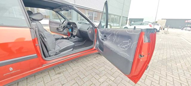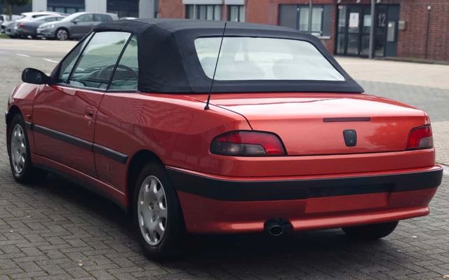 Dieser gepflegte Peugeot 307 Cabrio aus dem Jahr 1999 präsentiert sich in attraktivem Rot mit grauer Stoffausstattung. Mit seinen 88 PS bietet der Benziner ein angenehmes Fahrerlebnis bei offenem Verdeck. Das Fahrzeug verfügt über eine manuelle Klimaanlage für angenehme Temperaturen im Innenraum und elektrisch verstellbare Außenspiegel für zusätzlichen Komfort. Die Servolenkung erleichtert das Manövrieren in engen Straßen und auf Parkplätzen. Das Lederlederlenkrad verleiht dem Innenraum eine sportliche Note. Der Peugeot entspricht der Euro-4-Norm und trägt die grüne Umweltplakette. Als Nichtraucherfahrzeug und mit lückenlosem Scheckheft präsentiert sich dieses viersitzige Cabrio in einem gepflegten Zustand.\\* Cabriolet mit Platz für 4 Personen\\* Manuelle Klimaanlage\\* Elektrisch verstellbare Außenspiegel\\* Lederlederlenkrad\\* Servolenkung\\* DAB-Radio und Tuner\\* Lückenlose Servicehistorie\\* Nichtraucherfahrzeug\\* Euro-4-Norm mit grüner Umweltplakette\\* Attraktive Farbkombination: Rot mit grauem Stoffinterieur\\