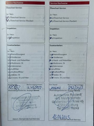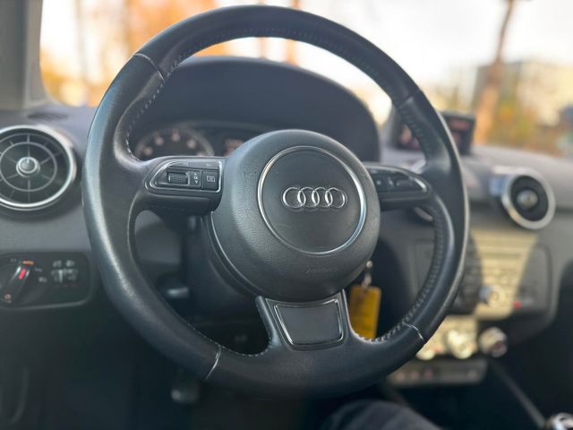 Dieser gepflegte Audi A1 aus dem Jahr 2013 präsentiert sich in elegantem Schwarz Metallic mit grauem Stoffinterieur. Der 122 PS starke Benziner mit 1390 ccm Hubraum und 4 Zylindern bietet dank Frontantrieb und Schaltgetriebe ein dynamisches Fahrerlebnis. Mit seiner umfangreichen Ausstattung überzeugt der Kompaktwagen durch Komfort und Sicherheit. Die automatische Klimaanlage, beheizbare Sitze und Frontscheibe sorgen für angenehmes Klima bei jeder Witterung. Das Navigationssystem, Bluetooth-Konnektivität und USB-Anschluss bieten moderne Konnektivität. Besonders praktisch sind die Einparksensoren vorne und hinten. Der A1 verfügt über ein lückenloses Scheckheft und erfüllt die Euro 5 Abgasnorm mit grüner Umweltplakette.\\\\* **Kundenzufriedenheit steht bei uns an erster Stelle:**\\* KLICKEN SIE AUF DEN UNTEREN LINK\\* https://handel.mobile.de/dealerratings/reviews?lang=de----\\* **Lieferung:**\\* WIR LIEFERN IHR FAHRZEUG GERNE BIS VOR DIE HAUSTÜRE (BIS 300 KILOMETER)----\\**Ankauf:*** WIR KAUFEN DEIN AUTO\\* SOFORTIGE BARGELDAUSZAHLUNG\\* Gerne nehmen wir Ihr altes Fahrzeug in Zahlung\\----\\* Armlehne\\* Beheizbare Frontscheibe\\* Elektr. Fensterheber\\* Elektr. Seitenspiegel\\* Innenspiegel autom. abblendend\\* Lederlenkrad\\* Sitzheizung\\* Zentralverriegelung\\* Berganfahrassistent\\* Bordcomputer\\* Multifunktionslenkrad\\* Servolenkung\\* Bluetooth\\* Navigationssystem\\* Navigationsvorbereitung\\* Soundsystem\\* TV\\* USB\\* Allwetterreifen\\* Leichtmetallfelgen\\\\**Tuner/Radio:*** Tuner/Radio\\\\**Anhängerkupplung:*** Anhängerkupplung abnehmbar\\\\**Klimatisierung:*** Klimaautomatik\\\\**Sicherheit:*** Alarmanlage\\* ABS\\* Elektr. Wegfahrsperre\\* ESP\\* Isofix\\* Nebelscheinwerfer\\* Notbremsassistent\\* Reifendruckkontrolle\\* Start/Stopp-Automatik\\\\**Airbags:*** Front-, Seiten- und weitere Airbags\\\\**Tagfahrlicht (Art):*** Tagfahrlicht\\\\**Pannenhilfe:*** Pannenkit\\\\**Einparkhilfe:*** Hinten\\* Vorne\\\\**Sport:*** Sportfahrwerk\\* Sportsitze\\\\**Innenausstattung:*** Stoff\\\\**Farbe der Innenausstattung:*** Grau\\\\**Sonderausstattung:**\\Ablage- und Gepäckraum-Paket, Airbag Beifahrerseite abschaltbar, Außenspiegel elektr. verstell- und heizbar, beide, Einparkhilfe hinten (APS), Einstiegsleisten mit Aluminiumeinlage, Frontscheibe mit Bandfilter oben, Klimaautomatik, LM-Felgen 7x16 (10-Speichen), Media-Paket, Sitzheizung vorn, Sonderlackierung Brilliant-Schwarz\\\\**Weitere Ausstattung:**\\Airbag Fahrer-/Beifahrerseite, Antriebs-Schlupfregelung (ASR), Ausstattungs-Paket: Ambition, Außenspiegel asphärisch, links, Außenspiegel konvex, rechts, Bremsassistent, Elektron. Differentialsperre (EDS), Fahrer-Informations-System (FIS), Gepäckraumabdeckung / Rollo, Innenausstattung: Aluminium-Optik, Innenausstattung: Ausströmer schwarz Hochglanz, Innenraumfilter: Staub- und Pollenfilter, Isofix-Aufnahmen für Kindersitz, Karosserie: 4-türig, Kopf-Airbag-System (Sideguard), Lendenwirbelstützen verstellbar, Motor 1,4 Ltr. - 90 kW 16V TFSI, Reifen-Reparaturkit, Rücksitzlehne geteilt/klappbar, Schadstoffarm nach Abgasnorm Euro 5, Seitenairbag vorn, Sitz-Paket, Sitzbezug / Polsterung: Stoff Herzklopfen, Sitze vorn höhenverstellbar, Sport-Fahrwerk, Sportsitze vorn, Start/Stop-Anlage, Stoßfänger lackiert, Wärmeschutzverglasung grün getönt\\----**Bei Interesse und weiteren Fragen freuen wir uns auf Ihren Anruf!Irrtum, Eingabefehler und Zwischenverkauf vorbehalten.Für eventuelle Fehler in der Anzeige übernehmen wir keine Haftung.Bitte Überprüfen Sie die Ausstattung am Fahrzeug vor dem Kauf.Die Fahrzeugbeschreibung dient lediglich der allgemeinen Identifizierung des Fahrzeugs und stellt keine Gewährleistung im kaufrechtlichen Sinne dar.Ausschlaggebend sind einzig und allein die Vereinbarungen im Kaufvertrag.Die Angaben erheben nicht den Anspruch auf Vollständigkeit**\\